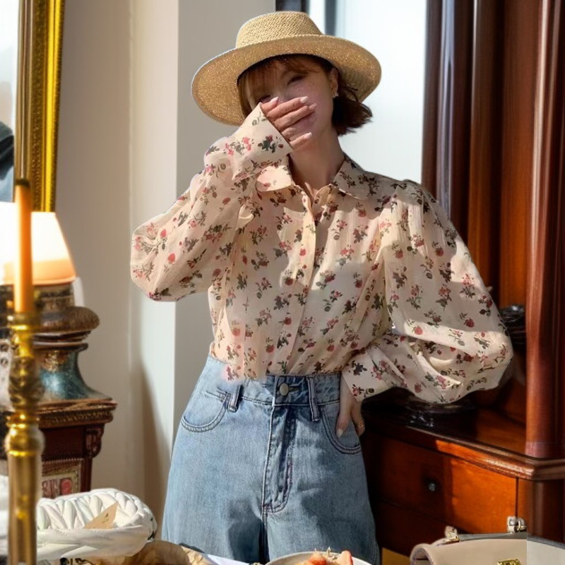 フレンチレトロ 早春 個性派バルーンスリーブシャツ レディース