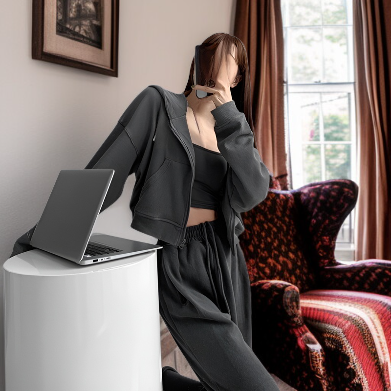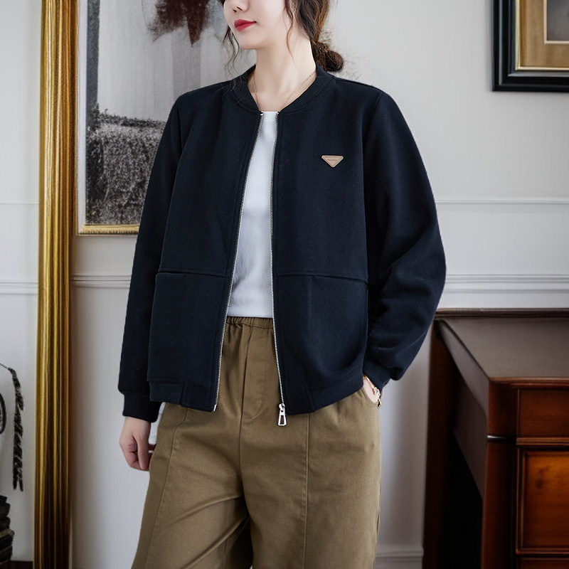 ゆったり大きいサイズレディースフード付きショートスウェットジャケット、春秋新スタイル