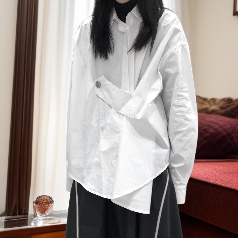 個性派山本風ダーク片側ボタン長袖シャツ