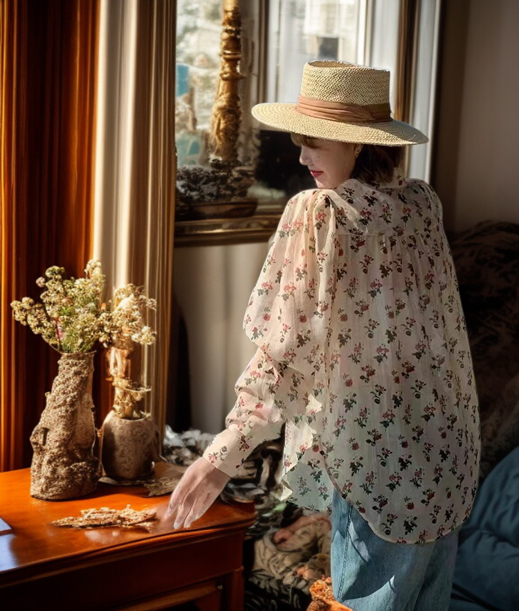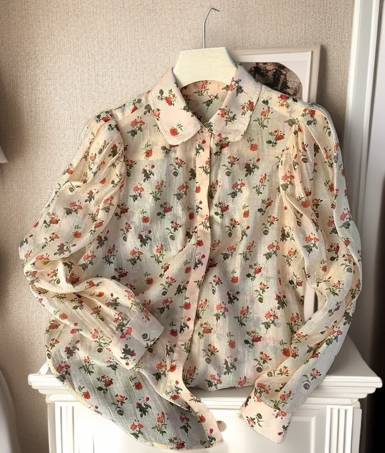 レトロ柄レディース長袖シャツ