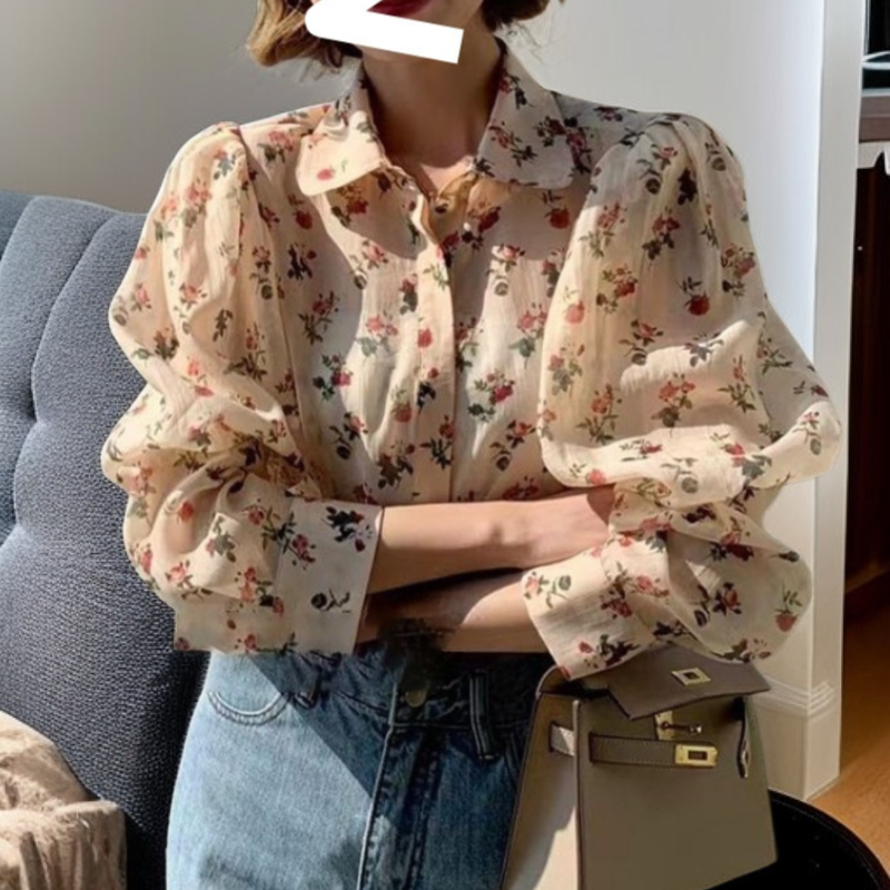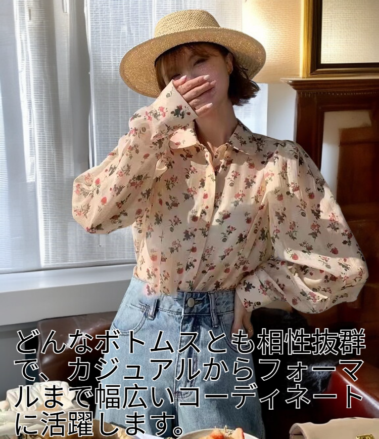 ● レトロな柄が目をひくデザインで、コーディネートの主役になるレディース長袖シャツです。