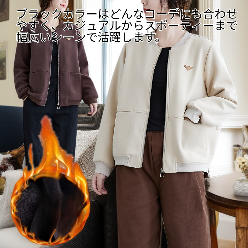 ● 長袖仕様で防寒性を高め、スタイリッシュな野球ジャケット風デザインがトレンド感を演出します。